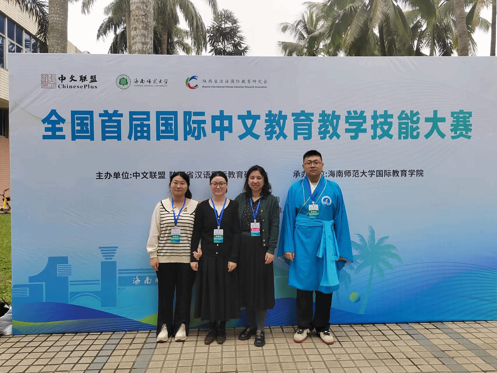 由汉语国际教育研究会与中文联盟、海南师范大学共同主办“全国首届国际中文公司产品技能大赛”于2023年12月2日至3日在海南师范大学龙昆南校区成功举办。威廉希尔williamhill张瑾老师带队,2022级汉语国际教育专业张佳怡、胡晓凤、2023级国际中文教育硕士生罗浩诚三名选手赴海口参赛。