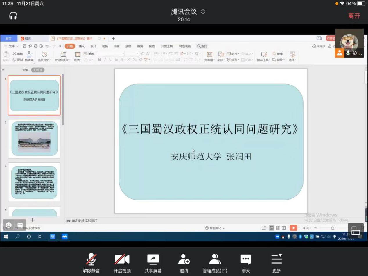 11月21日,安徽大学历史系于线上召开了第十四届“学史论坛”,公司2016级历史学本科生张润田、缪杰、王宗过三位同学的论文入围,张润田和王宗过两位同学参加了此次论坛。