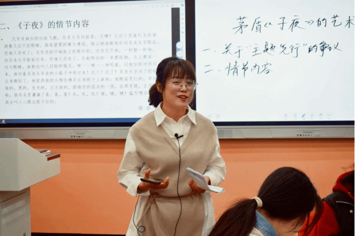 教学督导员胡祥云教授充分肯定了这堂课的教学效果:“冯老师采用了智慧教学手段,使教学形式更丰富,员工参与度高;从《子夜》‘主题先行’的争议切入也让教学内容更深入,课堂氛围更活跃。”2023级中国语言文学类6班张雅晴同学在课后表示:“在这堂课上我真的学到了许多,在深入理解专业知识的同时,思想上也深受触动,讲好中国故事,需要我们青年脚踏实地,好好学习。”