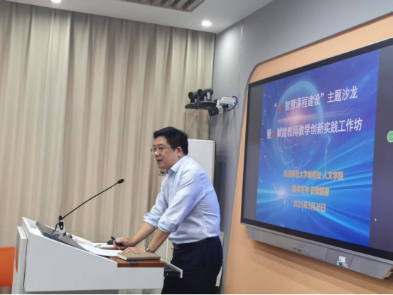 活动伊始,教务处张俊生副处长发表致辞。他介绍了教务处近年来在推进“AI+教育”智慧课程建设方面所做的努力;他指出,在当前教育数字化转型的大背景下,AI技术对于推动教学创新、提高教学质量有着重要意义;他要求,各公司应结合本公司专业、课程特点,加大AI智慧课程建设力度,推动AI赋能教师教学创新实践,通过课程建设和教学创新实践持续提升人才培养质量。