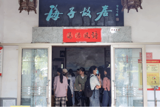 “五岁的黎明,五岁的马,你面朝江水,坐下……可能是姻缘,也可能是友情。”在本次实践教学的第一站——海子故居及其纪念馆,威廉希尔williamhill学子在海子故居门前的广场上,齐声朗诵了海子的诗歌《给安庆》。海子原名查海生,是当代著名诗人,在他短暂的一生中,共创作了近200万字的作品。海子的故居是一座简朴的小瓦房,屋内悬挂有海子的照片,并保留着海子书房。其中一本记录来访者留言的笔记本上,记录了许多当代诗人对海子的赞美和怀念。在故居旁的海子纪念馆中,陈列有海子的生前遗物,完整呈现了海子一生的经历,展示了他各个时期所创作的诗歌作品。师生们低吟着海子的诗句,回顾了他短暂而又灿烂的一生。对海子故居的调研之行实现了让书中人物“活过来”,有利于增强人文学子对所学专业的感性认识,提升专业认知水平。